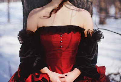 This beautiful Red Victorian wedding dress is pure magic and inspired by old world fashion and Cinderella's magic night. This dress is flattering in every shape. Created with a delicate champagne dupioni silk. A fully boned 4 layered corset on top with white grometts and cream ribbon lacing. Easy to put on with a side zipper. Decorated with ruffled cream lace and hand sewen glass perals and crystals. The bottom of the corset is flared and frosted with a pleated satin white ruffle accented with lace Can be made with our without off the shoulder satin sleeves.