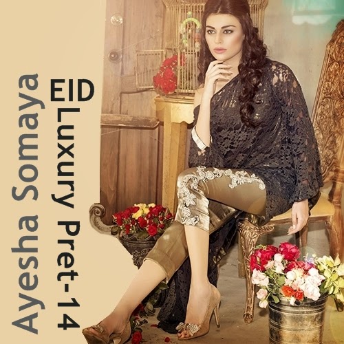 For upcoming festive days, Ayesha Somaya has developed Luxury pret wear eid dresses with extra lavish theme and innovative concept. She has exposed glam characteristic for important days of eid. Ayesha Somaya Luxury Pret collection 2014 has highlighted with all western styles that considered evergreen, remarkable and signature moods of society.